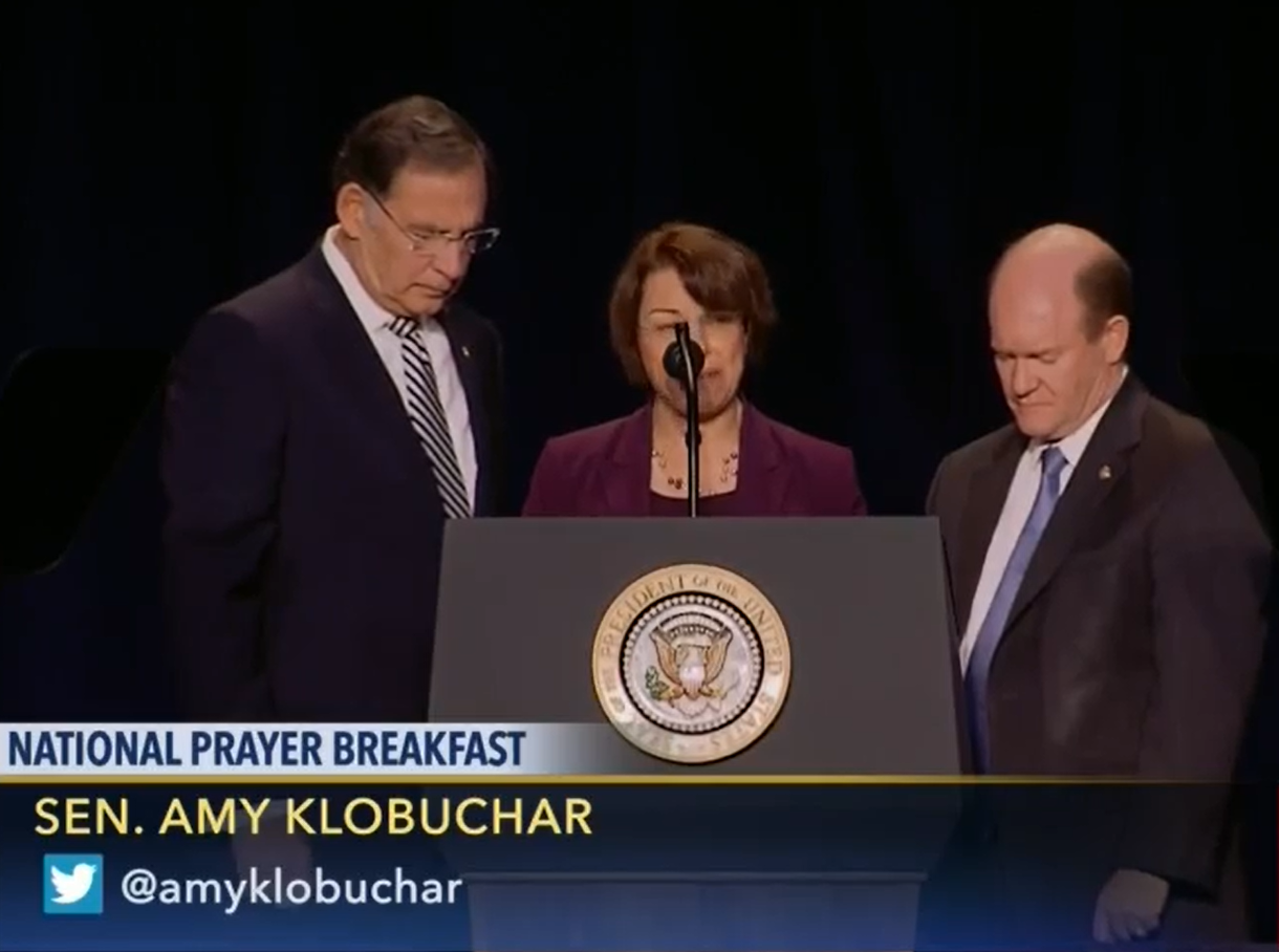 In the past, Klobuchar has been more than a name on the letterhead. In 2017 — when the Family facilitated Russian attendance — it was Klobuchar who delivered the closing prayer. She spoke at the event as long ago as 2008 and Tweeted as recently as this summer about having co-chaired it.